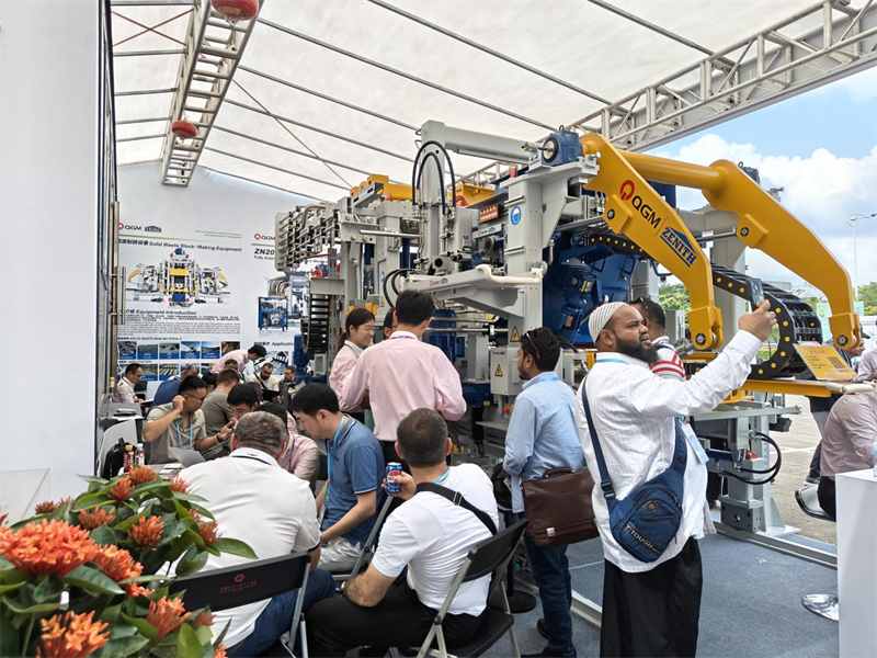 Во время Кантонской ярмарки компания QGM провела двойную выставку на стендах 12.0 C21-24 на открытом воздухе и 20.1 K11 в помещении. Компания представила свою полностью автоматическую машину для производства кирпича ZN1000-2C, представительную машину для формования бетонных блоков высокого класса. Объединив передовые китайские и немецкие технологии, эта машина может похвастаться выдающимися преимуществами, такими как высокая эффективность, высокая точность, низкое энергопотребление и интеллектуальные технологии, полностью демонстрируя лидирующую позицию QGM в области интеллектуального производства и оборудования для экологически чистых строительных материалов.