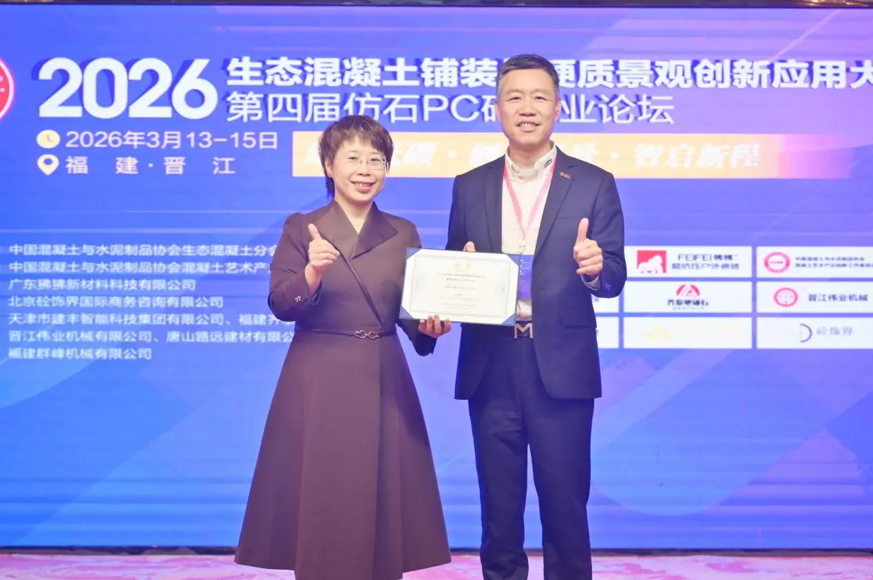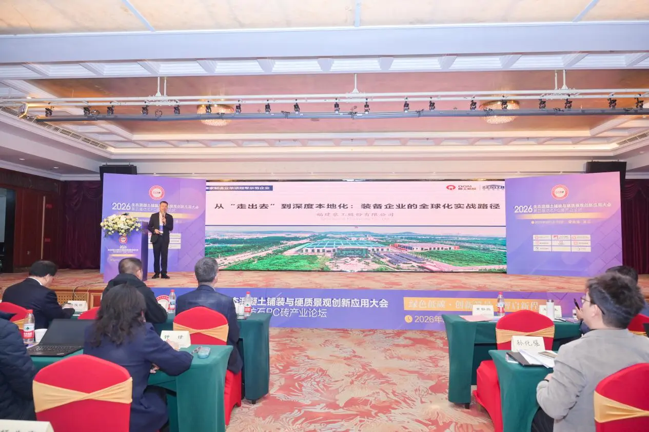 С 13 по 15 марта в Цзиньцзяне, провинция Фуцзянь, прошла конференция по инновационным применениям экологического бетонного покрытия и ландшафтного дизайна 2026 года, а также 4-й отраслевой форум по ПК-кирпичам из искусственного камня. Конференция под названием «Зеленый и низкоуглеродистый: инновационные ландшафты, разумный выбор нового курса» собрала экспертов, ученых и представителей компаний из таких областей, как исследования и разработки, производство, проектирование, строительство, испытания и производство оборудования. Вместе они исследовали инновационные пути развития индустрии экологически чистого бетонного покрытия и ландшафтного дизайна. ФуцзяньКомпания Компания Quangong Machinery Co., Ltd.была приглашена принять участие в мероприятии, где открыла выставочный стенд для демонстрации технологических достижений компании и комплексных системных решений в области оборудования для производства бетонных изделий.
