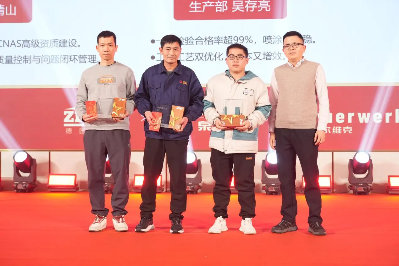 Затем на конференции были отмечены награды команд и отдельных лиц, добившихся выдающихся результатов в области улучшения управления, обеспечения безопасности производства и бережливого производства в 2025 году. Отдел контроля качества, отдел цифровизации и бизнес-аналитики, а также технологический отдел получили награду «Выдающиеся команды за предложения по улучшению»; несколько сотрудников удостоены награды «Эксперты по улучшению»; цех электроуправления и сборочный цех получили награду «Отличник безопасного производства»; а Департамент цифровизации и бизнес-аналитики получил награду «Отличная команда бережливого производства». Каждая награда воплощает результаты командной работы и постоянного совершенствования.