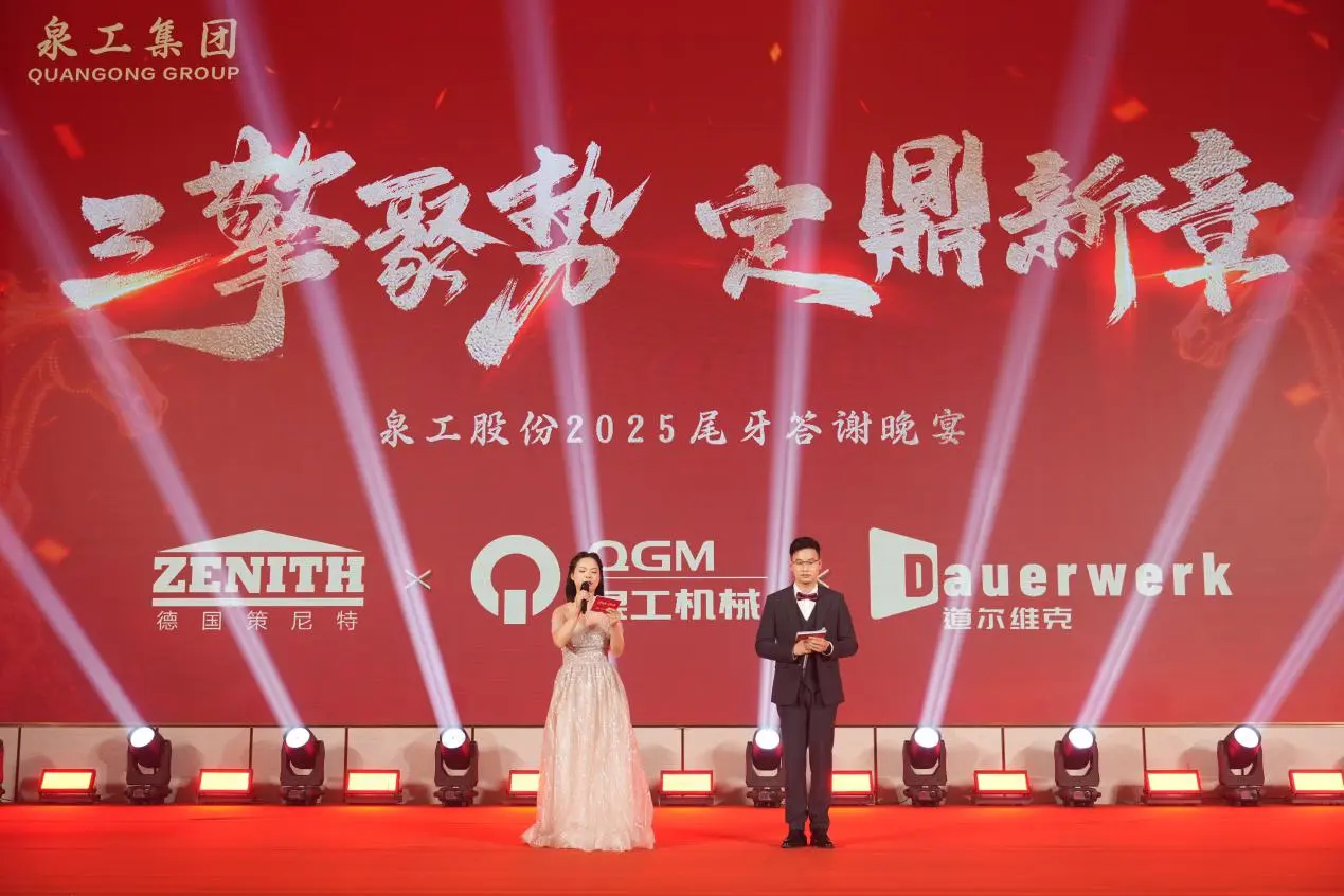 Во второй половине дня 3 февраляФуцзяньская компания Quangong Machinery Co., Ltd.провела годовую церемонию награждения и подведения итогов за 2025 год, а также празднование Нового года в отеле Quanzhou Donghai Honor под темой «Три двигателя сходятся, открывая новую главу». Руководители компании, ключевые представители клиентов, все сотрудники и члены их семей собрались вместе, чтобы подвести итоги тяжелого труда, поделиться достижениями в области развития и с нетерпением жду светлого будущего.