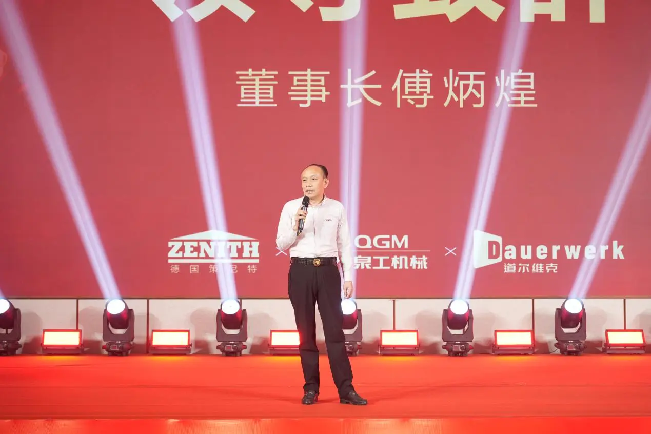 Фу Бинхуан, секретарь партийного отделения и председатель Quangong Machinery Co., Ltd., в своем выступлении перед партией и страной выразил искреннюю благодарность за создание благоприятной среды для развития компании, а также поблагодарил клиентов за многолетнее доверие и поддержку. Он также выразил искреннюю благодарность всем сотрудникам за их напряженную работу в течение года. Председатель особо отметил, что в день ежегодного собрания многие сотрудники все еще работали на производственной линии и на объектах, демонстрируя свою ответственность и преданность делу своими действиями, полностью воплощая дух компании «гордиться тяжелым трудом и утверждаться посредством практических действий».