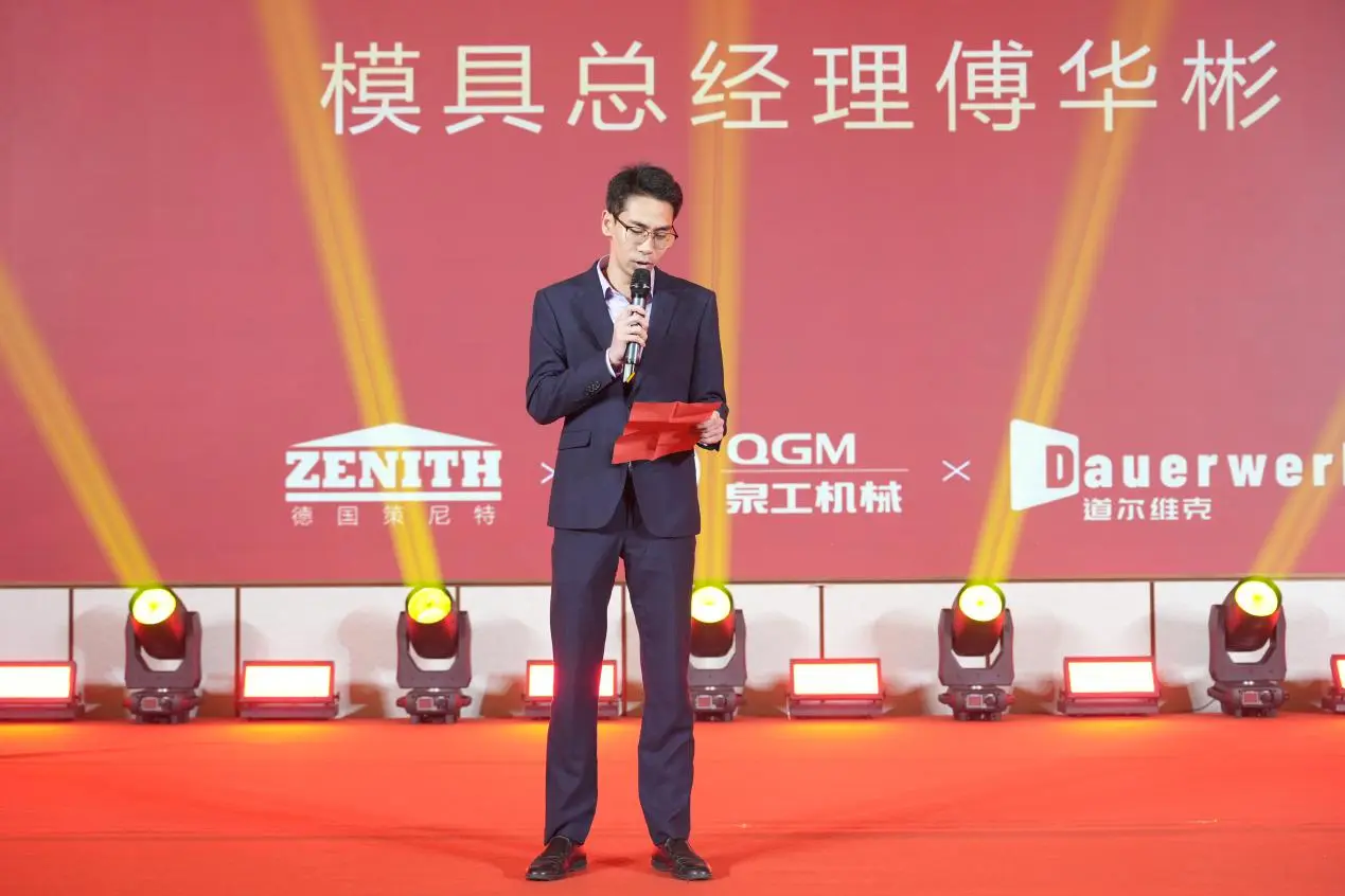 Фу Хуабинь, генеральный директор Quangong Mold Company, в своем выступлении остановился на достижениях развития компании по производству пресс-форм в 2025 году. За последний год общая производственная мощность компании по производству пресс-форм увеличилась на 16% по сравнению с аналогичным периодом прошлого года. Несколько ключевых процессов подверглись технологической модернизации и автоматизации, что значительно улучшило качество и срок службы продукции. В то же время, открывая зарубежные сервисные станции, компания постоянно укрепляла свои возможности обслуживания на зарубежных рынках, что привело к увеличению бизнеса запасных частей на 30%, что обеспечило надежную поддержку общему развитию группы.